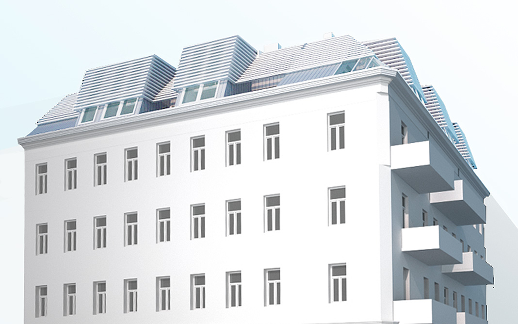 DACHAUSBAU / Wien 1100 Dachausbau in Wien Favoriten / ca. 510m² Wohn NFl. / 6 WE Maisonette mit Terrassen in beiden Wohnebenen / Fertigstellung 2019