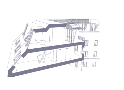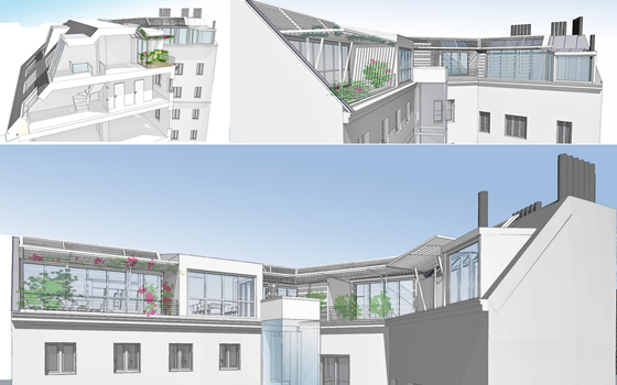 / Wien 1020 DACHAUSBAU Dachausbau in 1020 Wien / ca. 350m² Wohn NFl. / 3 WE Maisonette mit Terrassen in beiden Wohnebenen / Einreichung 2019